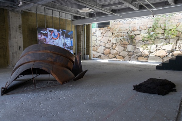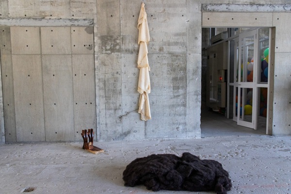 例えば展示室の床も、工事現場のようにコンクリートむき出し。