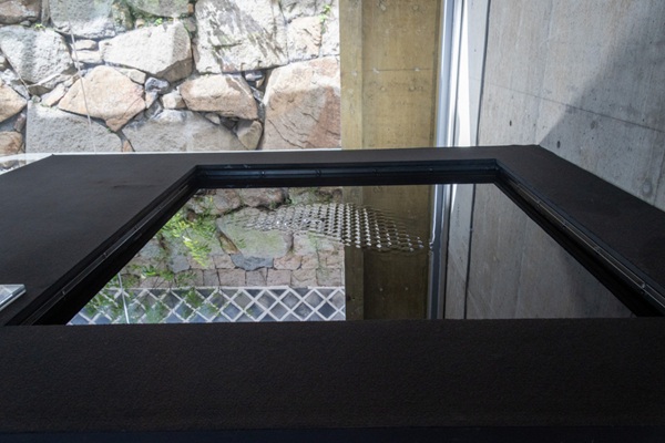 また、奥にガラスの大窓を新たに設けることにより、館内より隣接する林原美術館の周囲を取り囲む石垣がよく見えるようになりました。