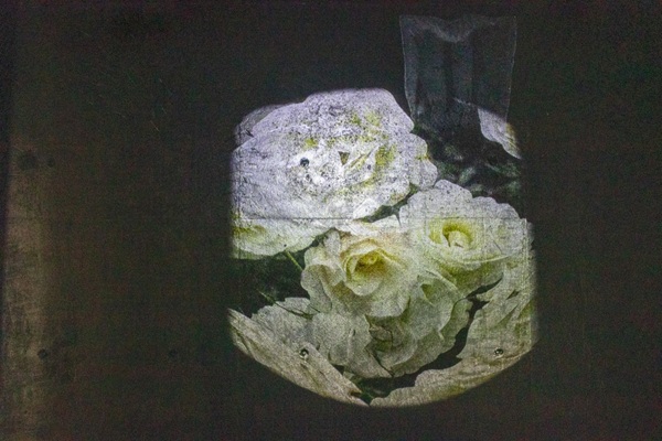 2階にはその他にも、コンクリートむき出しの床面に描かれた作品(円)や、昔懐かしい黒電話のダイヤルを回すと受話器から詩が流れる作品、各種映像作品などが展示されています。