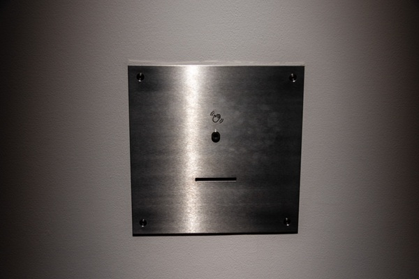 地下展示室に入ってすぐの右手にあるこちらの装置。壁面に設置された光電センサーに手をかざすと、最大25年先までのある時間の情報(日付と時間)がランダムに刻印された紙が出てきます。