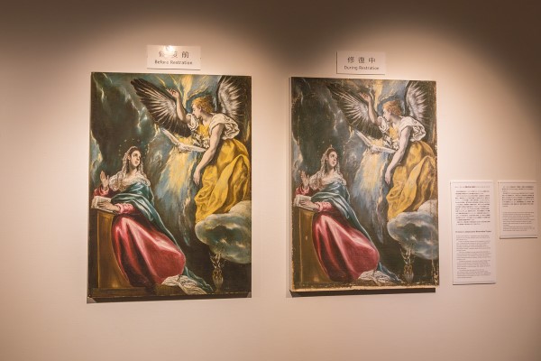 なんと、後世に描き加えられたけれど当初の姿に戻さなかった部分もあるのです。それは、マリアの頭上の天使の輪のような12の星の冠。これは「聖母の無原罪の御宿り」という教義を表すモチーフであるため、「受胎告知」というテーマでは描かれないそうです。また、エル・グレコの他の「受胎告知」には描かれていないため、当初はなかったと考えられます。しかし、日本でずっと親しまれてきたという歴史があることも踏まえ、現時点では除去しないことに決めたそうです。修復するというのは非常に複雑な研究や判断があるのですね。