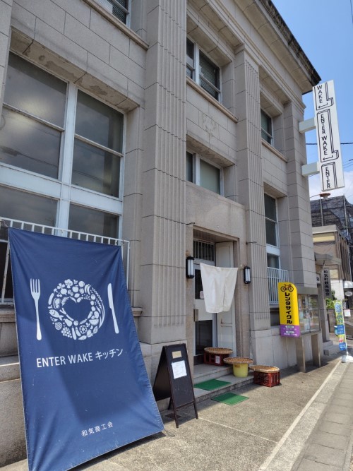 和気観光協会が入っている洋風の建物は、1階が「ENTER WAKE キッチン」で毎週月~水曜日は食堂をやっています。3階の「ENTER WAKE BASE」はレンタルスペースや、コワーキングスペースの貸出などを行っています。和気観光協会ではレンタサイクルを借りることができます。