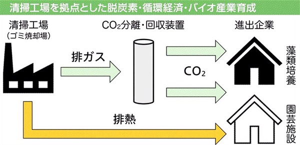 市は13年、環境省の事業でCO2回収試験を開始。16年に日10トンのCO2回収による商業運転し、先陣を切って進出したアルビータへのCO2の販売を始めた。日本初のCCUの商用化であり、ゴミ処理場としては世界初のCCU事業だ。